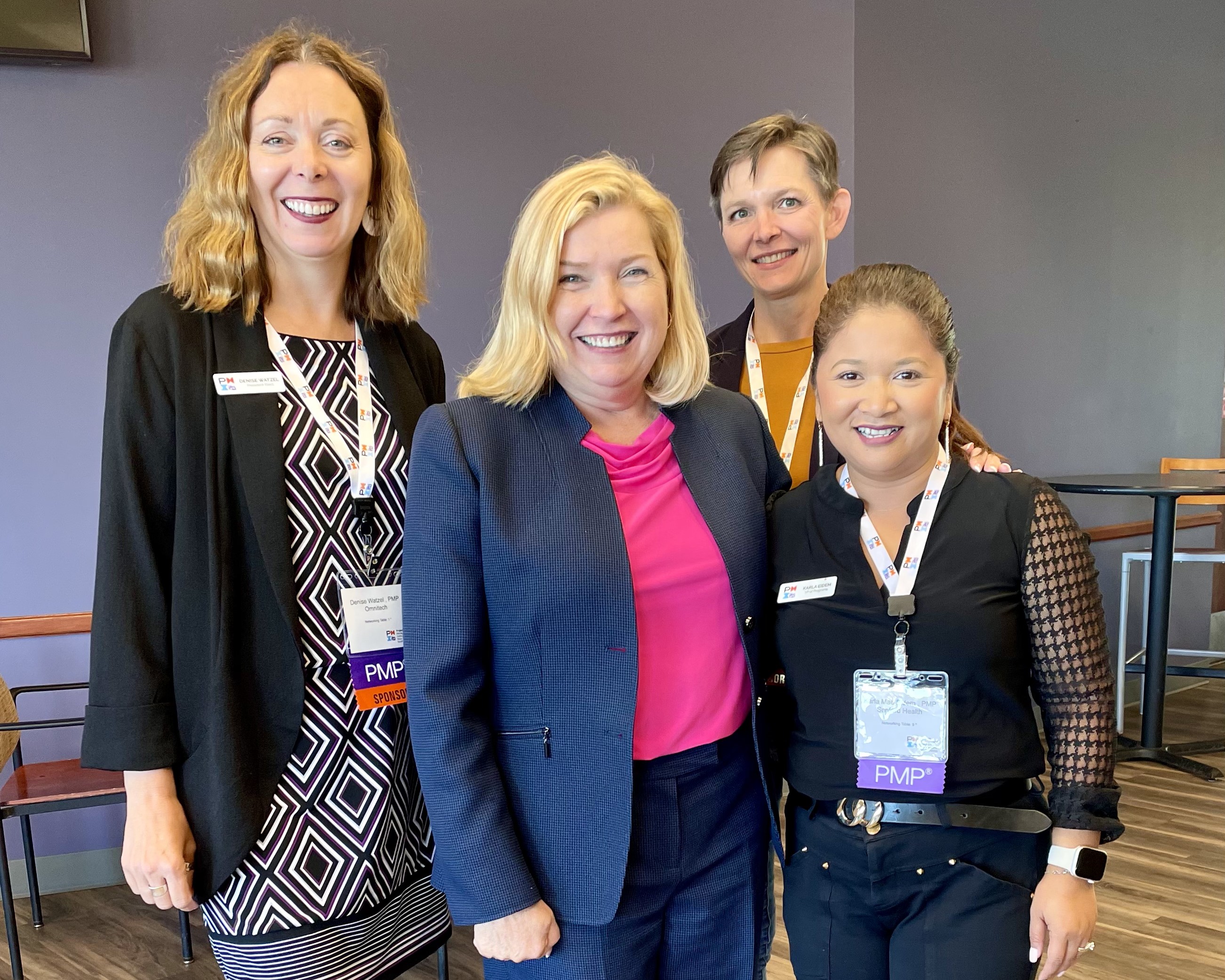 We started off the day with a light breakfast and networking. The energy in the room was palpable as people shared their stories and learned more about their fellow attendees. April Callis Birchmeier led our first speaker session to talk to us about change management. Project managers are change agents that deal with competing schedules, evolving requirements, scarce resources, and more. April's message was timely and well received. After April, we moved into more technical sessions, where Joshua Barnes talked about PMI's newest toolkit, Disciplined Agile (DA). DA is about using processes from various methodologies to build a customized way to manage projects. This toolkit allows organizations to personalize their project management journey and make it their own. It's the most revolutionary thing to happen to project management since Agile in the early 2000s. After lunch, we had a mentor panel consisting of leaders from local businesses, which was moderated by John Beranek. This was probably the most popular session of the day, as we all could relate to the panelists' stories. We then heard again from April on sponsor engagement and did a deeper dive into Disciplined Agile. Our last session of the day was held by John, our panel moderator from earlier in the day. The session had some interaction with the crowd and a chance to share trigger points and tools to help manage day-to-day interactions. John brought humor, wisdom, and years of experience working within the justice system and finished up the day with personal insight.